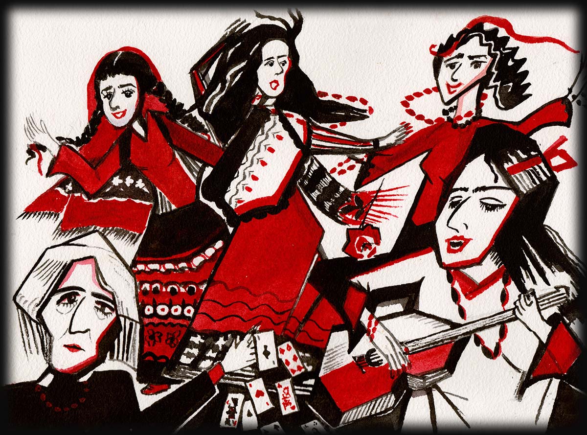 GYPSY: Ace of hearts. That just about says it all. My firstborn. The instructor that showed me what real love was all about. Oh, of course Oke and I know real love. But there is nothing quite the same as the love a mother experiences with her child. She came out of my body. Do you know what a miracle that is? I held her to my breast and she took nourishment that I made inside myself. Not food that I grew and processed and cooked. I made it inside me! I imagined as she suckled at my breast that she was taking the food right from my heart into her little mouth. Little did I know that before she was more than toddling around the house I would be growing two more little ones inside me. They are special in themselves, but Katarina Mirela, my Lyubitshka, was my first.